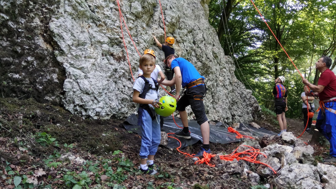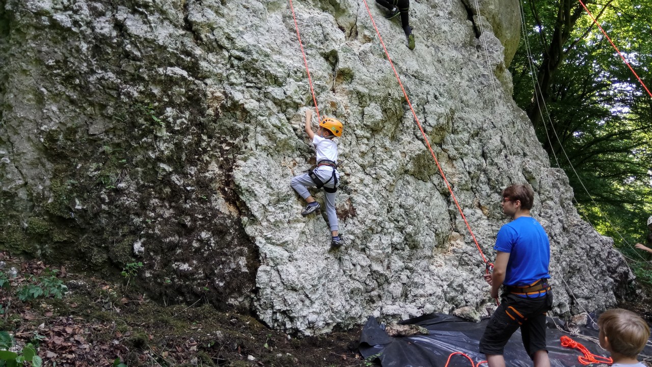 – wspinaczka z górną asekuracją po łatwych trasach wspinaczkowych przygotowanych na Skale na Łopiankach,